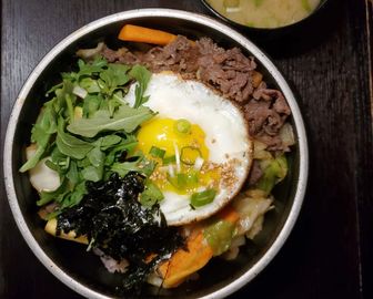 Served with sautéed Kimchi, steamed egg, and Tofu